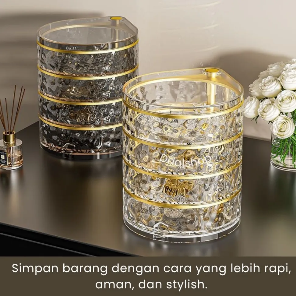 Rak Kosmetik Akrilik Aesthetic 4 Susun Putar – Tempat Makeup & Aksesoris Perhiasan Meja Ri