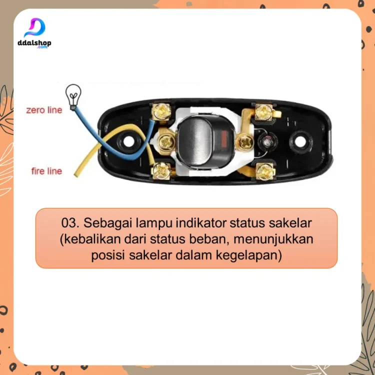 Upgrade kenyamanan di rumah Anda dengan Saklar Push Button On/Off universal ini! Cocok untuk berbagai lampu seperti lampu meja, lampu cermin, dan lampu dinding. Dilengkapi indikator LED yang menyala saat saklar aktif, membantu Anda melihat status nyala/mati dengan jelas.