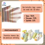 Desain motif lucu dan warna cerah membuat tampilan anak semakin menggemaskan! Setiap kaos kaki dibuat dengan jahitan presisi dan pencetakan reaktif anti luntur, aman untuk kulit bayi dan anak-anak karena bebas allergen, bebas logam berat, dan bebas formaldehida.