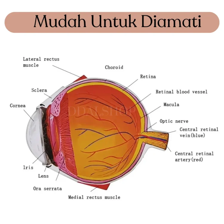 Dengan tampilan visual yang kaya informasi dan mudah dipahami, model bola mata ini adalah alat bantu terbaik untuk memperdalam pengetahuan tentang sistem penglihatan manusia.