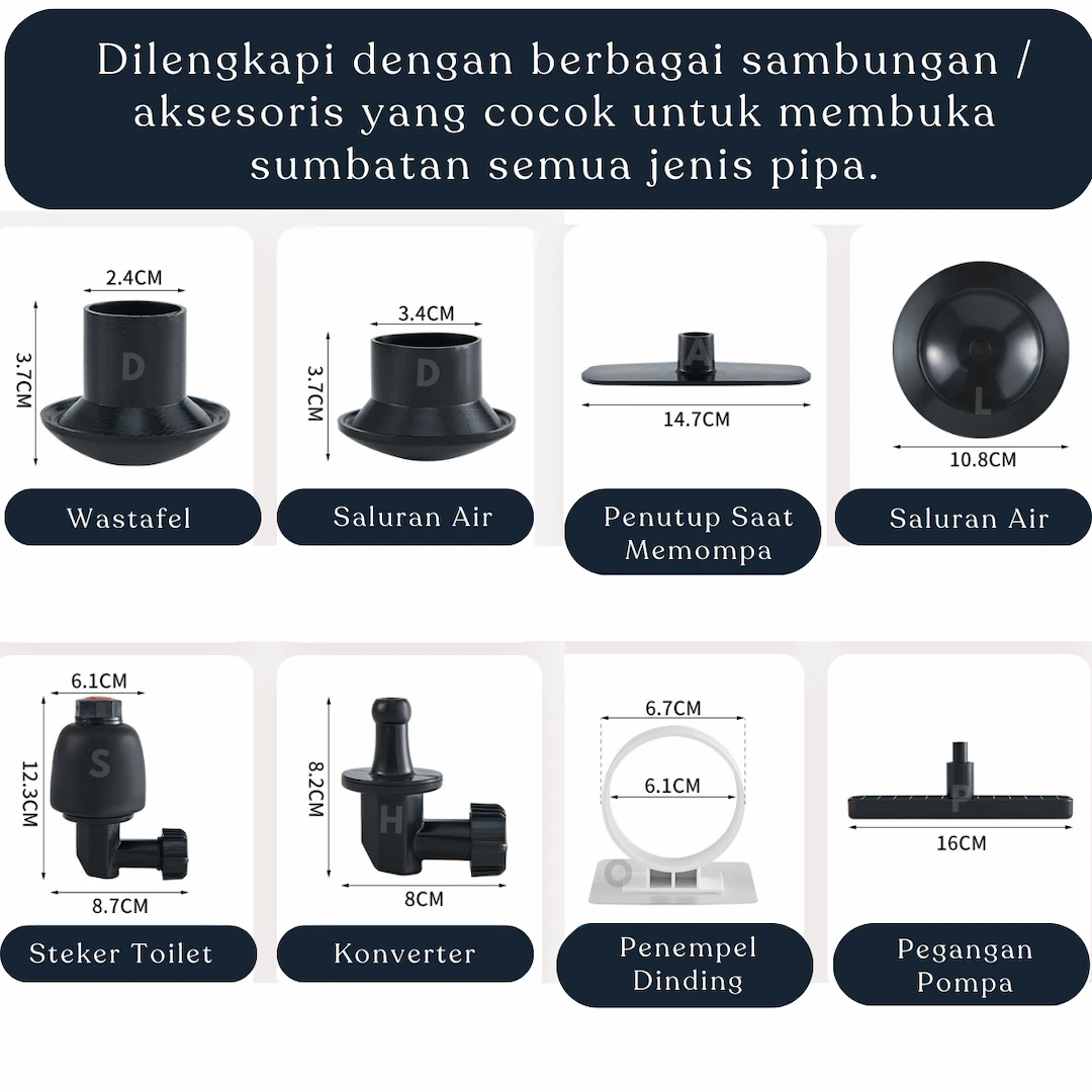 Terbuat dari material kokoh dan tahan lama, desain pompa dorong ini sangat mudah digunakan, cukup isi dengan udara lalu tekan untuk mengeluarkan semburan kuat yang langsung menghancurkan penyumbatan. Alat ini ramah lingkungan, hemat biaya, dan bisa dipakai berulang kali untuk kebutuhan rumah tangga maupun usaha.