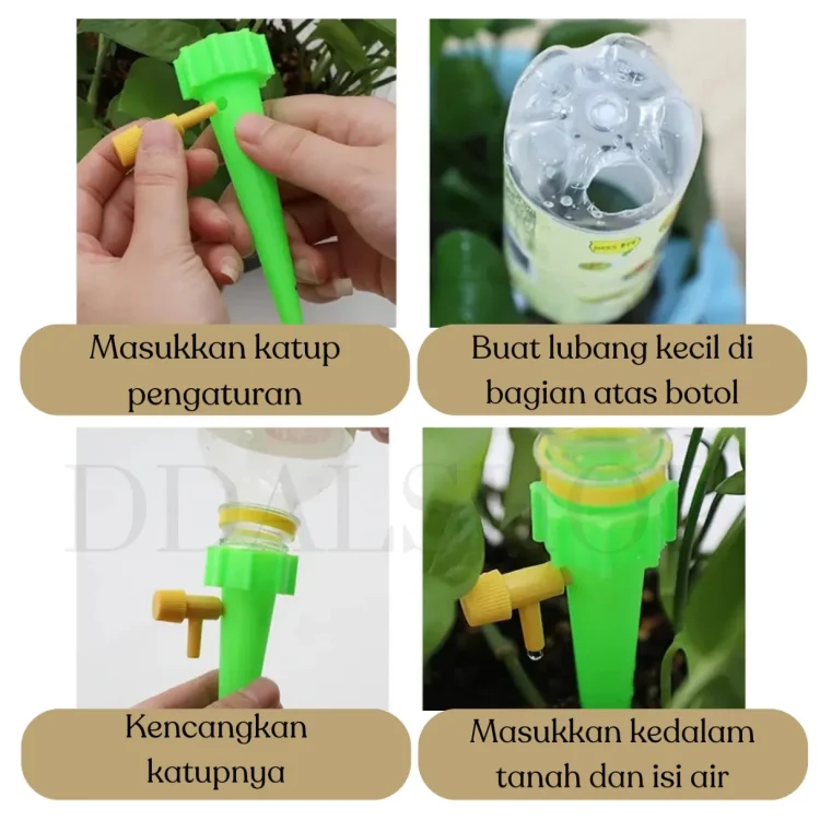 Ingin menyiram tanaman tanpa repot? Gunakan Alat Siram Tanaman Otomatis Sistem Tetes Air yang praktis dan ramah lingkungan. Alat ini memanfaatkan botol minuman bekas (seperti Coca-Cola, Sprite, Teh Botol, dll) sebagai sumber air, tanpa memerlukan listrik atau timer elektronik. Sistemnya sederhana namun efektif, ideal untuk menyiram tanaman secara perlahan dan merata.