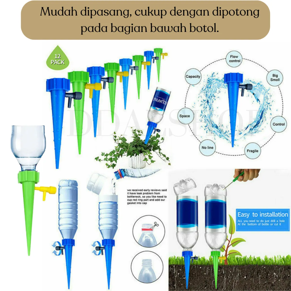 Ingin menyiram tanaman tanpa repot? Gunakan Alat Siram Tanaman Otomatis Sistem Tetes Air yang praktis dan ramah lingkungan. Alat ini memanfaatkan botol minuman bekas (seperti Coca-Cola, Sprite, Teh Botol, dll) sebagai sumber air, tanpa memerlukan listrik atau timer elektronik. Sistemnya sederhana namun efektif, ideal untuk menyiram tanaman secara perlahan dan merata.