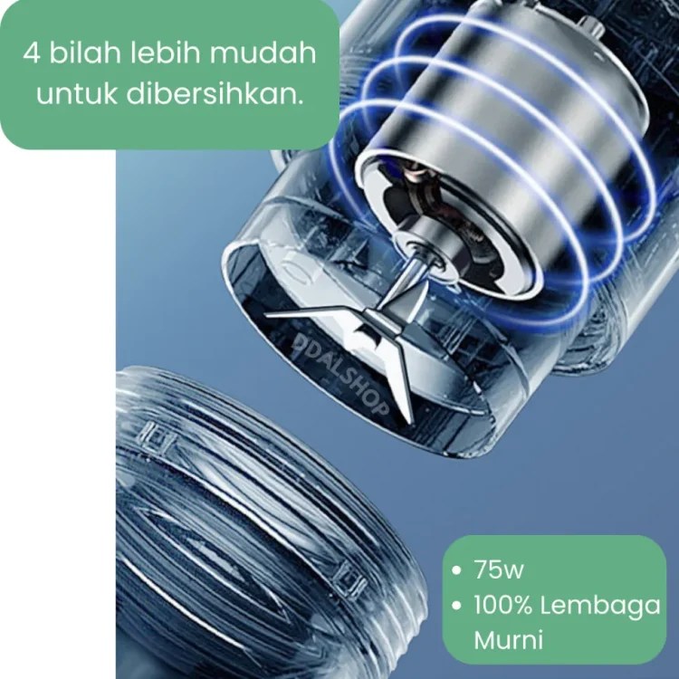 Dengan daya 75W, alat ini irit energi namun powerful. Cocok untuk Anda yang ingin membuat jus, smoothies, atau minuman sehat di mana saja, kapan saja.