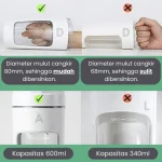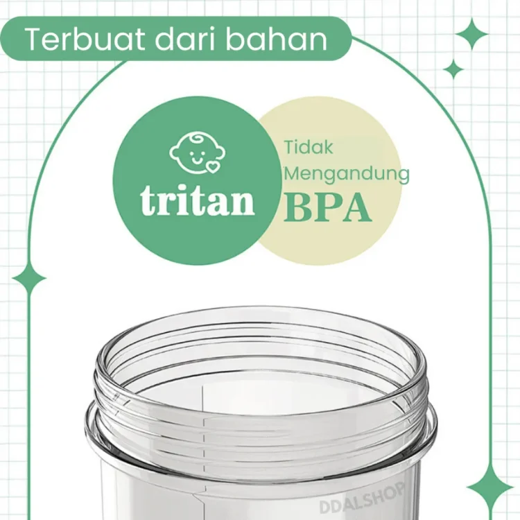 Kapasitas 600ml, cocok untuk 1 porsi smoothie atau jus. Material Tritan BPA-Free membuatnya aman untuk kesehatan. Desain ringan, minimalis, dan portabel – bisa dibawa ke gym, kantor, atau saat bepergian.