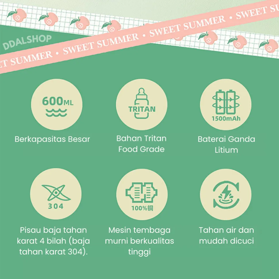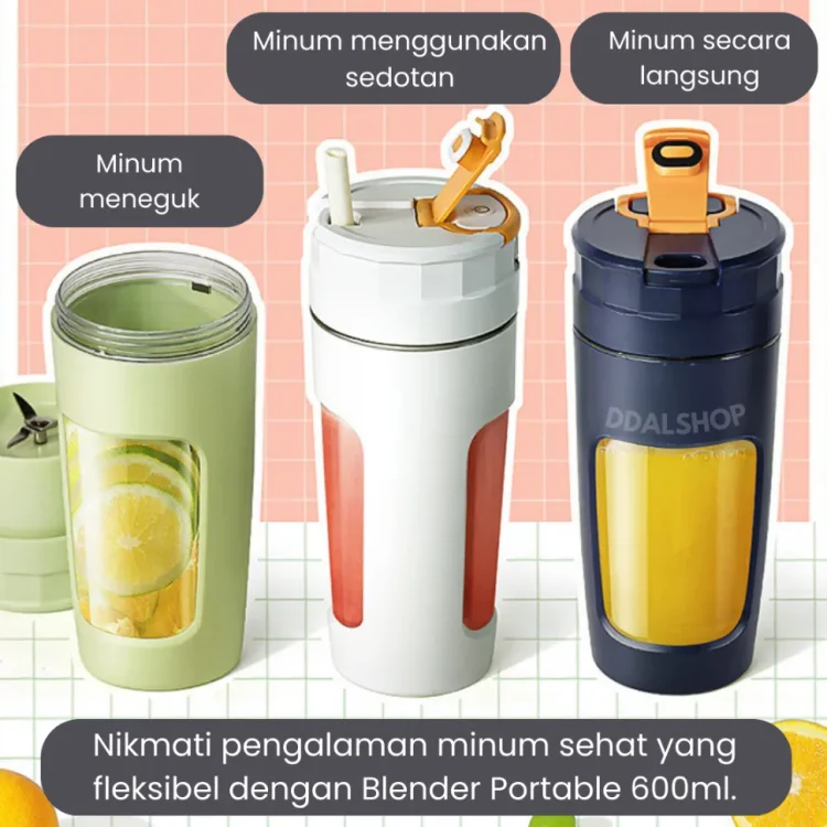 Blender Portable Juicer Buah Tumbler 600ml – 4 Mata Pisau, BPA-Free, Praktis untuk Traveling & Gaya Hidup Sehat