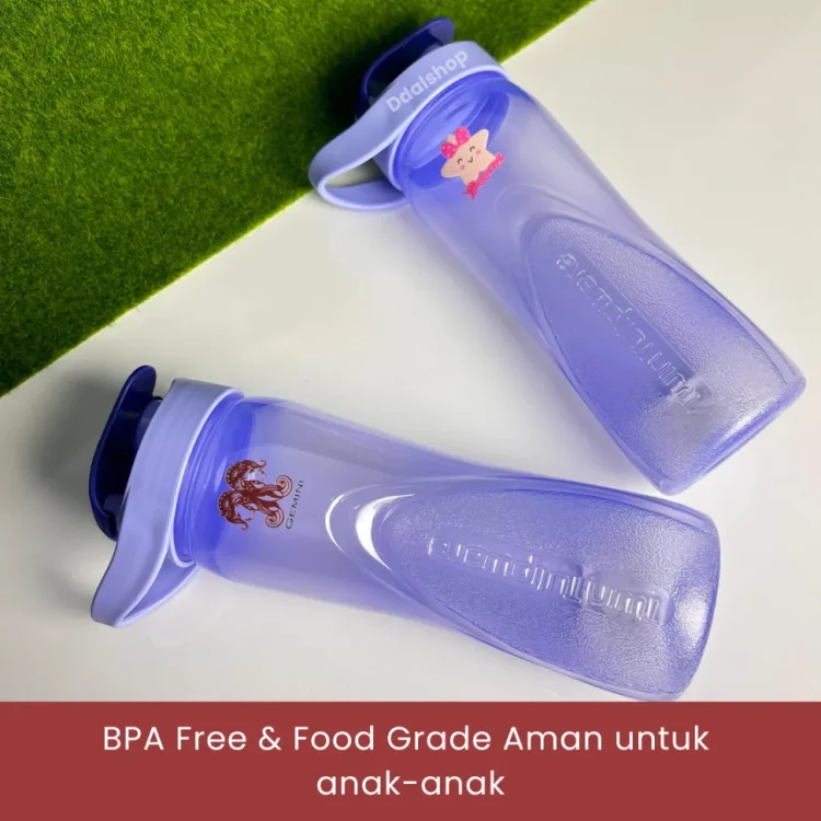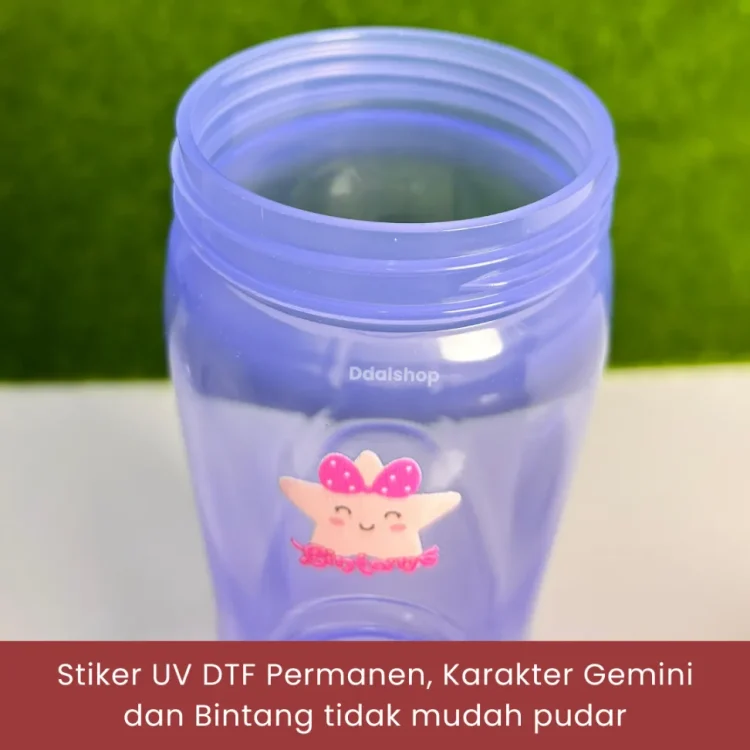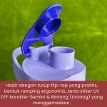 Hadir dengan tutup flip-top praktis, desain ergonomis, dan stiker UV DTF karakter Gemini & Bintang Lintang yang tak mudah pudar.