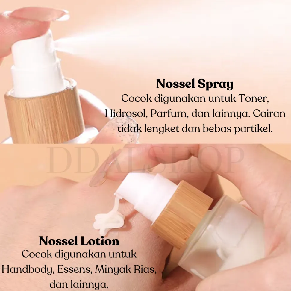 Botol kaca aesthetic isi ulang ini hadir dengan desain elegan dan inovasi modern yang siap menjadi teman perjalanan Anda. Dibuat dari kaca berkualitas tinggi dengan pilihan nossel spray dan lotion, botol ini dapat disesuaikan sesuai kebutuhan Anda. Cocok digunakan untuk menyimpan parfum, hydrosol, toner, lotion, handbody, essence, dan berbagai cairan kecantikan lainnya.