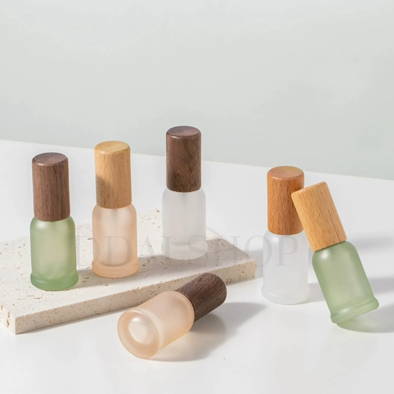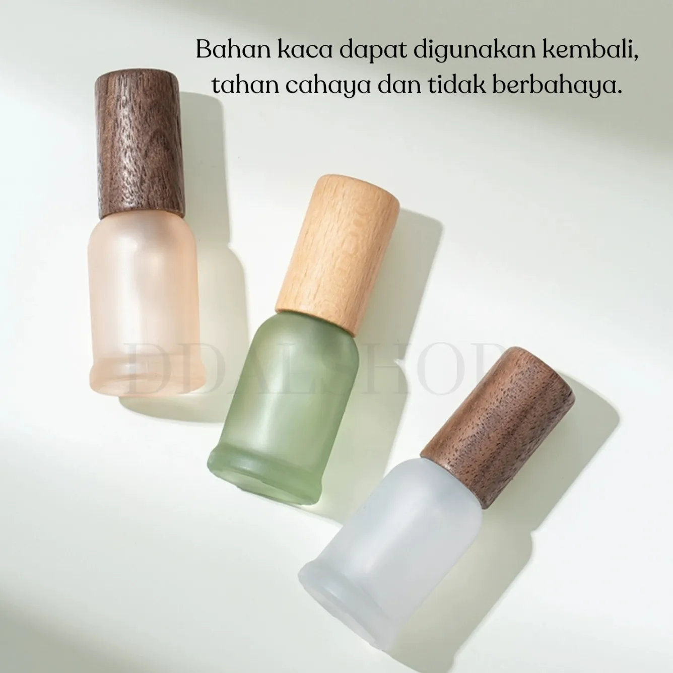 Botol Parfum Spray Aesthetic Kaca 10ml – Refill Travel Size dengan Tutup Kayu Natural