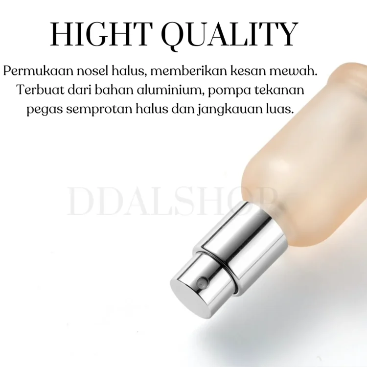 Ukuran 10ml sangat travel-friendly, mudah masuk ke dalam tas kecil, clutch, hingga kantong. Aman untuk dibawa bepergian termasuk perjalanan pesawat karena kapasitasnya sesuai untuk cabin travel. Spray nozzle berkualitas memberikan semprotan halus dan merata, ideal untuk parfum, face mist, essential oil, room spray, hingga cairan disinfektan.