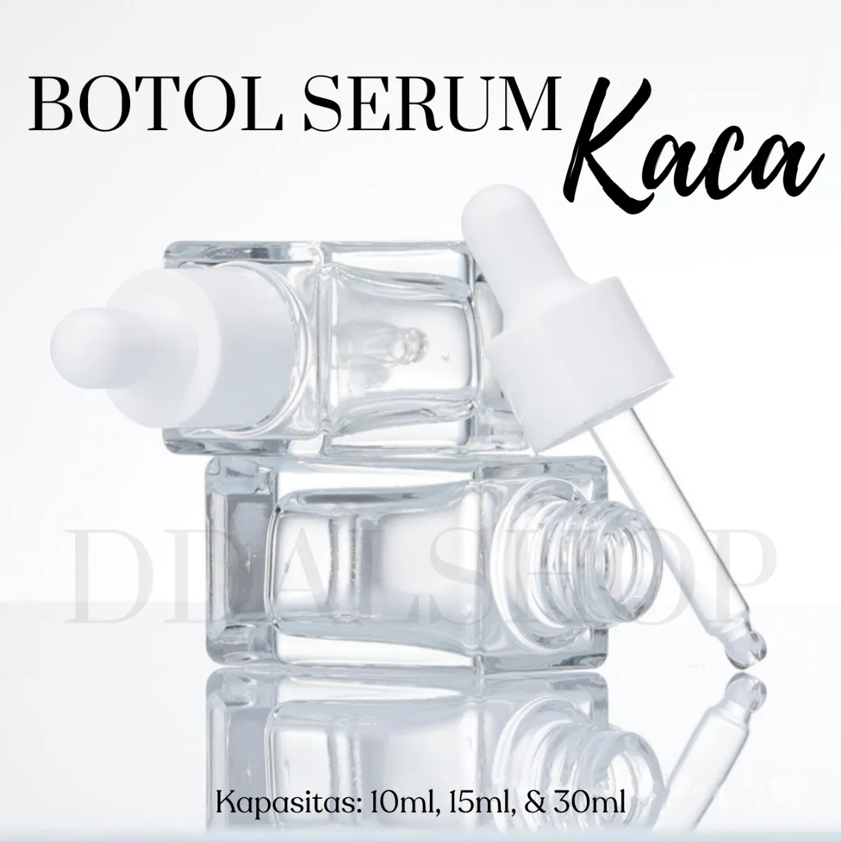 Botol Kaca Serum Kosong Pipet 10ml 15ml 30ml bening – botol kaca bening dengan pipet tetes dan tutup karet putih. Cocok untuk serum, essence, essential oil, dan produk DIY skincare. Tersedia berbagai ukuran. Sudah termasuk bubble wrap, tambah ekstra untuk perlindungan lebih.