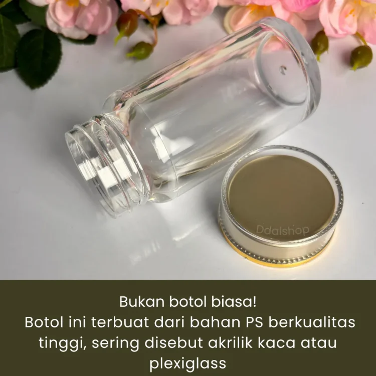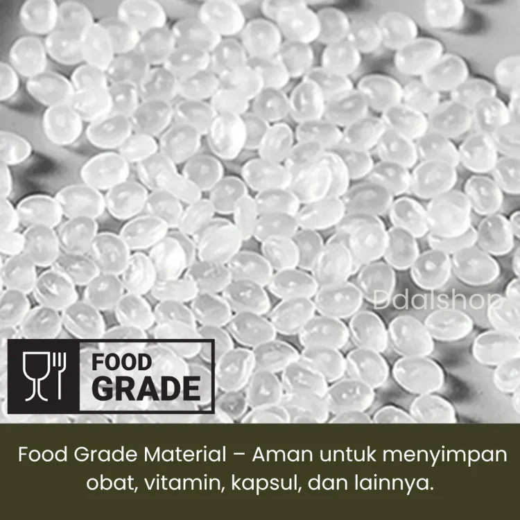 Botol Toples Wadah Obat Kapsul PS Food Grade Tebal hadir sebagai solusi penyimpanan vitamin, kapsul, obat, dan suplemen harian dengan desain bening elegan seperti kaca, namun tetap ringan, praktis, dan aman dibawa ke mana saja. Dibuat dari material Polystyrene (PS) food grade berkualitas, botol ini lebih tebal dibanding botol plastik tipis biasa sehingga tidak mudah retak atau penyok, namun tetap ringan untuk dibawa traveling.