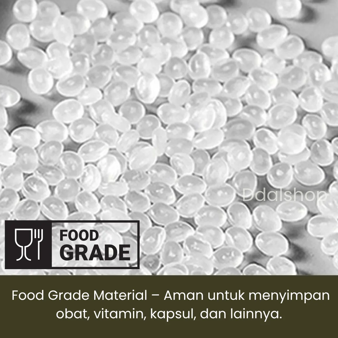 Wadah obat mini ini tersedia dalam berbagai ukuran mulai dari 4ml hingga 147ml, sehingga bisa disesuaikan dengan kebutuhan penyimpanan harian. Tidak hanya untuk obat dan kapsul, botol bening ini juga bisa digunakan sebagai wadah jamu, herbal kering, rempah, teh, hingga kemasan suplemen mini.