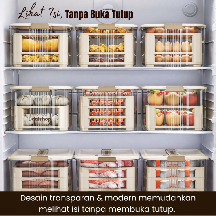 Box Penyimpanan Kulkas Food Grade Anti Bau Kedap Udara dengan Tray adalah solusi praktis untuk menjaga bahan makanan tetap segar, higienis, dan bebas bau di dalam kulkas maupun freezer. Organizer makanan ini dirancang khusus untuk menyimpan ikan, daging, seafood, buah, dan sayuran agar tidak tercampur aroma serta lebih tahan lama.