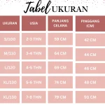 Tersedia 5 ukuran: 100–140 (usia 2–8 tahun)