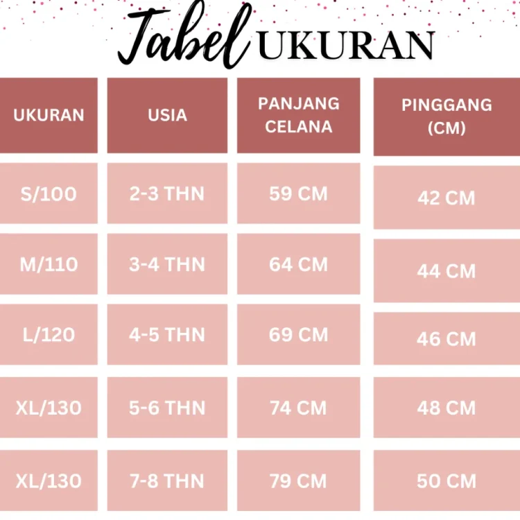 Celana anak ini cocok dijadikan pakaian harian, OOTD santai, ataupun hadiah untuk si kecil tercinta. Jangan khawatir soal ukuran, karena tersedia detail size chart agar lebih pas untuk anak Bunda.