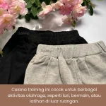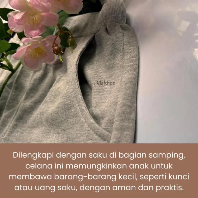 Celana panjang Training Olahraga Casual ini dirancang khusus untuk mendukung aktivitas aktif anak-anak usia 6-15 tahun. Dengan kombinasi antara kenyamanan dan desain yang trendi, celana ini menjadi pilihan sempurna untuk olahraga, bermain, atau hanya bersantai di rumah. Terbuat dari bahan berkualitas yang memberikan keleluasaan gerak, sehingga si kecil bisa bergerak dengan bebas tanpa batasan.