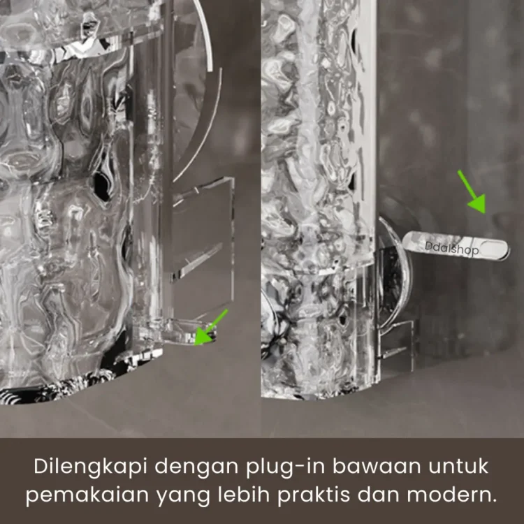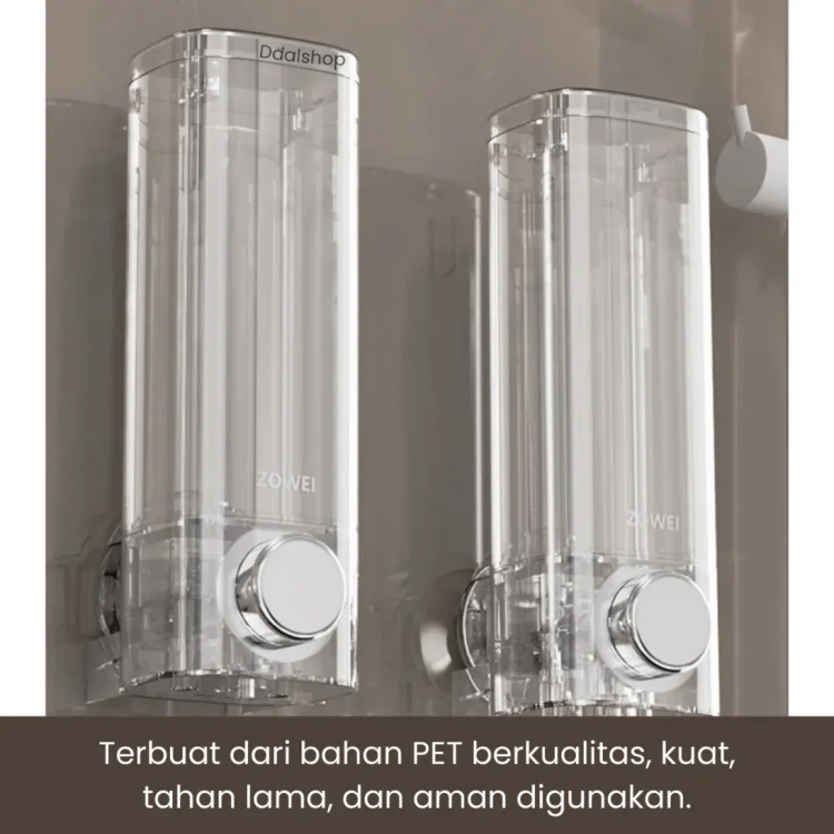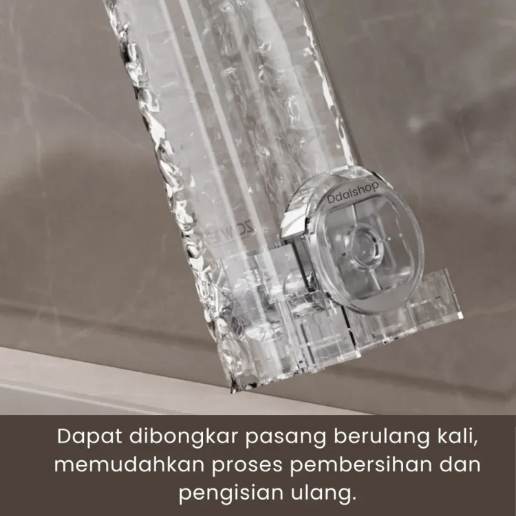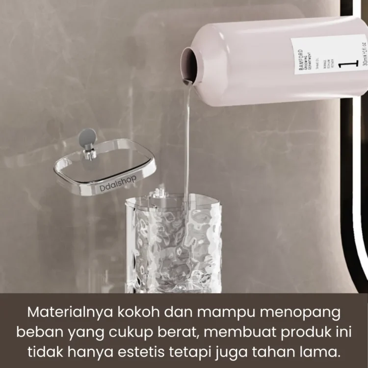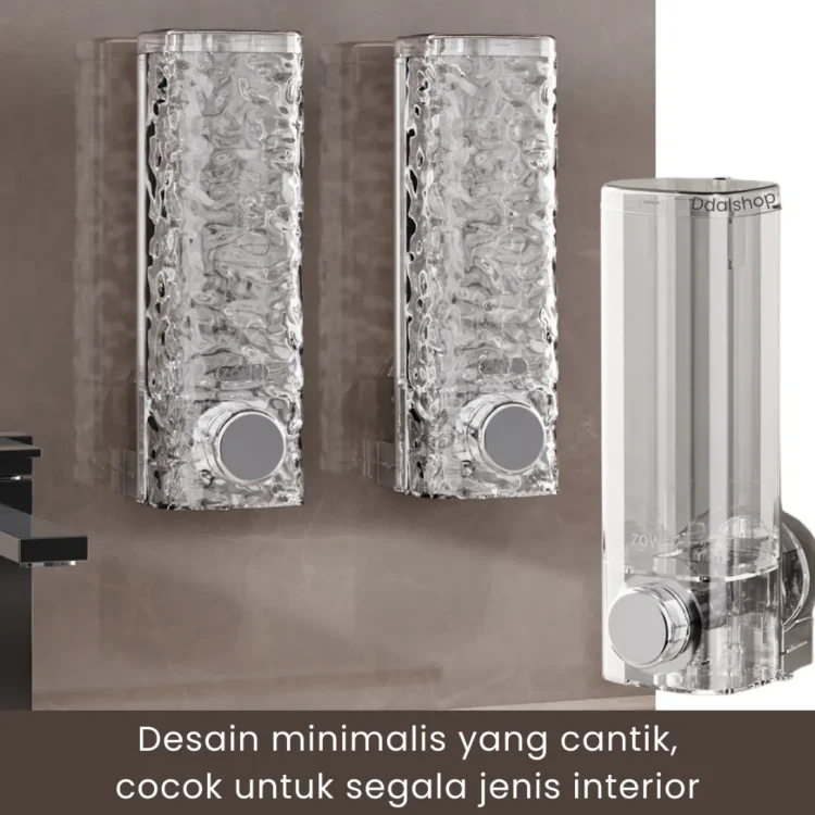 Kelebihan lainnya, dispenser ini bisa ditempel di dinding dengan perekat kuat tanpa perlu bor sehingga hemat tempat dan membuat ruangan lebih rapi. Praktis untuk digunakan di rumah, café, salon, hingga hotel. Tampilan kristal yang estetik menjadikan dispenser ini tidak hanya berfungsi sebagai tempat sabun, tapi juga dekorasi cantik untuk ruangan Anda.