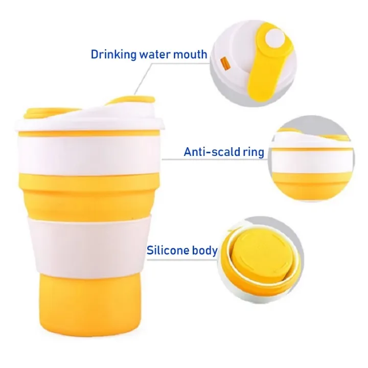 Gelas Lipat Silicone 400 ml portabel dengan tutup anti bocor dan tali pegangan. Terbuat dari food grade silicone BPA Free, aman untuk minuman panas dan dingin, cocok untuk hiking, camping, traveling, dan kantor.