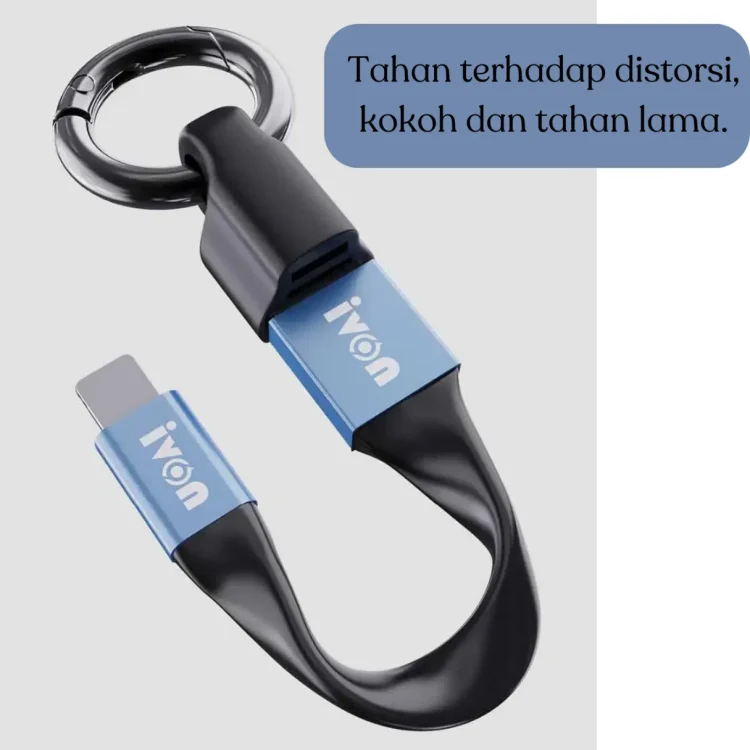 Desain mini sepanjang 11,5 cm dengan bahan aluminium TEP yang kokoh serta gantungan kunci berbahan karet elastis menjadikan kabel ini pilihan ideal sebagai teman perjalanan. Anda bisa dengan mudah menjepitkannya ke tas, saku, atau dompet tanpa khawatir kusut atau rusak.