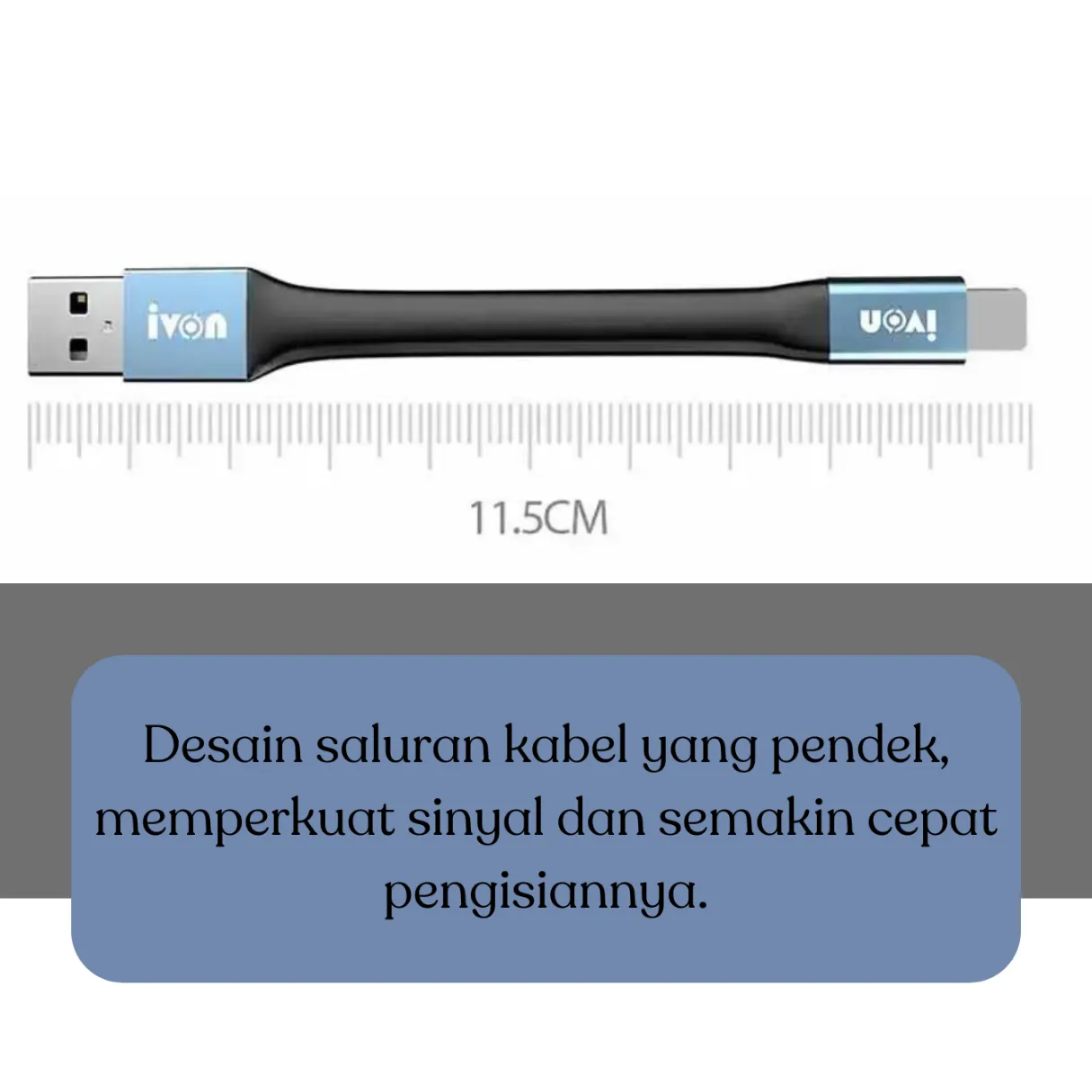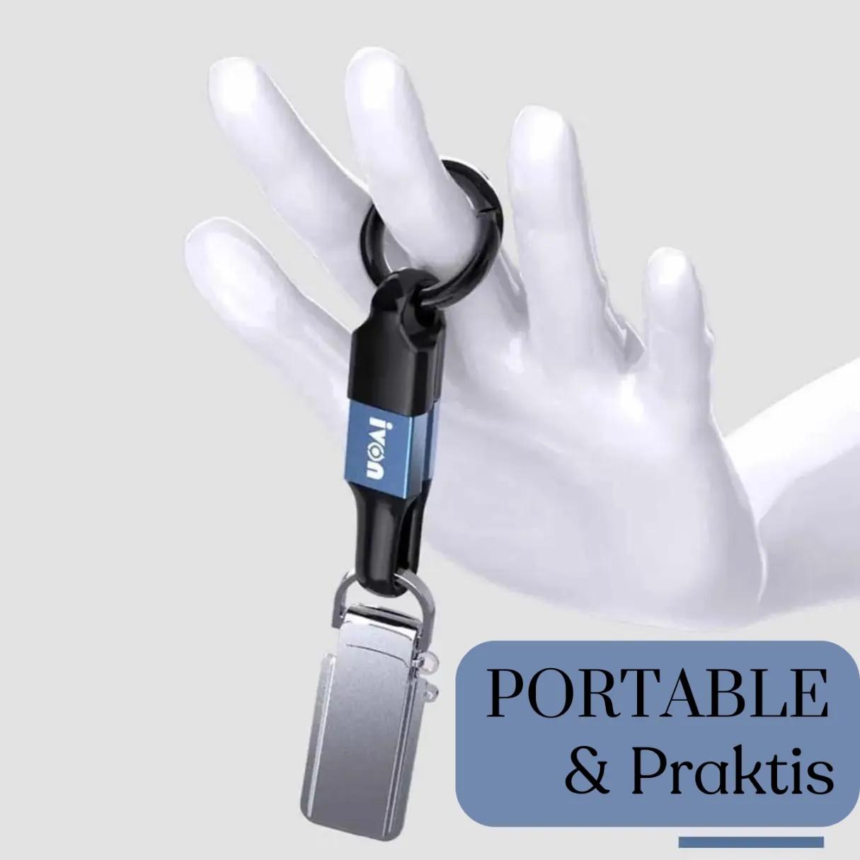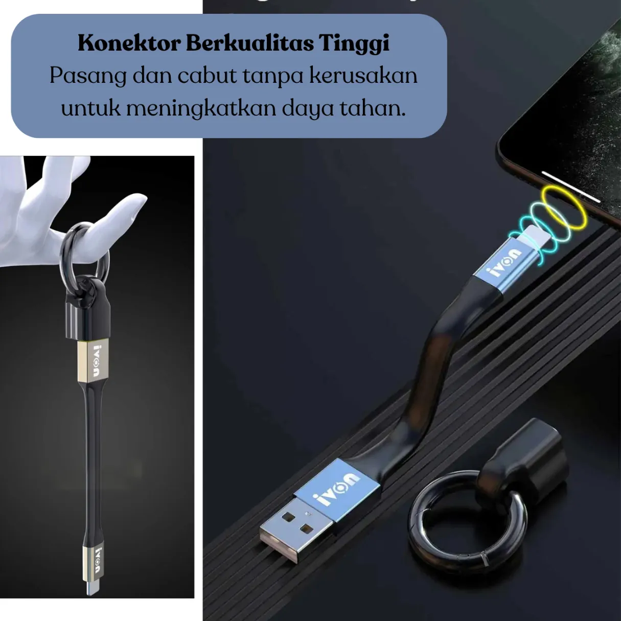 Desain mini sepanjang 11,5 cm dengan bahan aluminium TEP yang kokoh serta gantungan kunci berbahan karet elastis menjadikan kabel ini pilihan ideal sebagai teman perjalanan. Anda bisa dengan mudah menjepitkannya ke tas, saku, atau dompet tanpa khawatir kusut atau rusak.