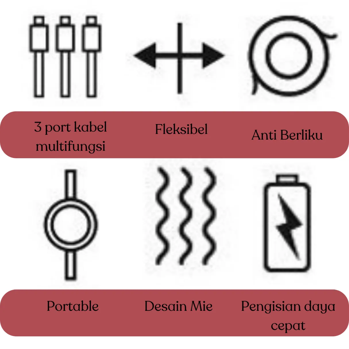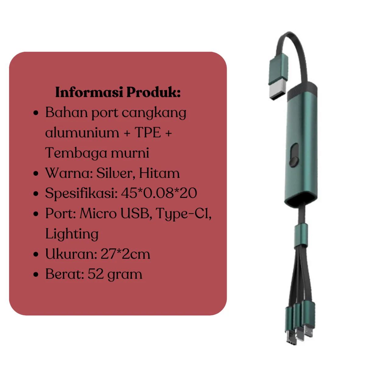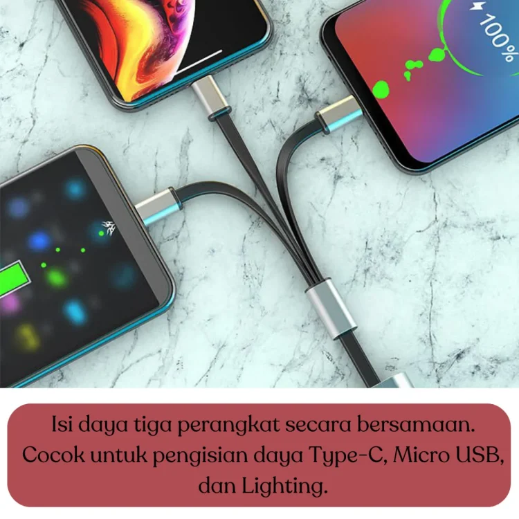 3-in-1 Charger: Cocok untuk berbagai perangkat, cukup satu kabel!