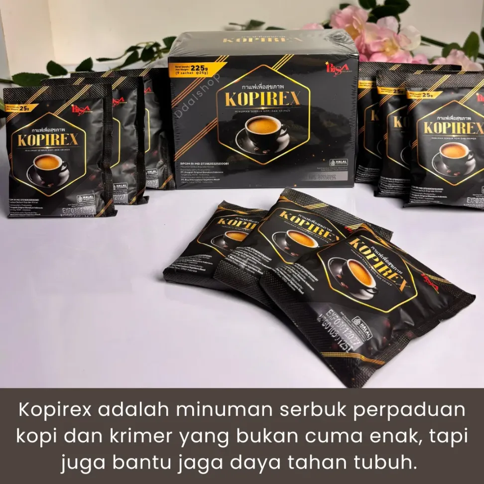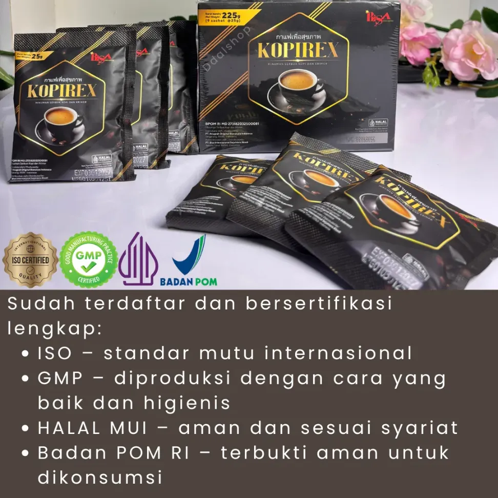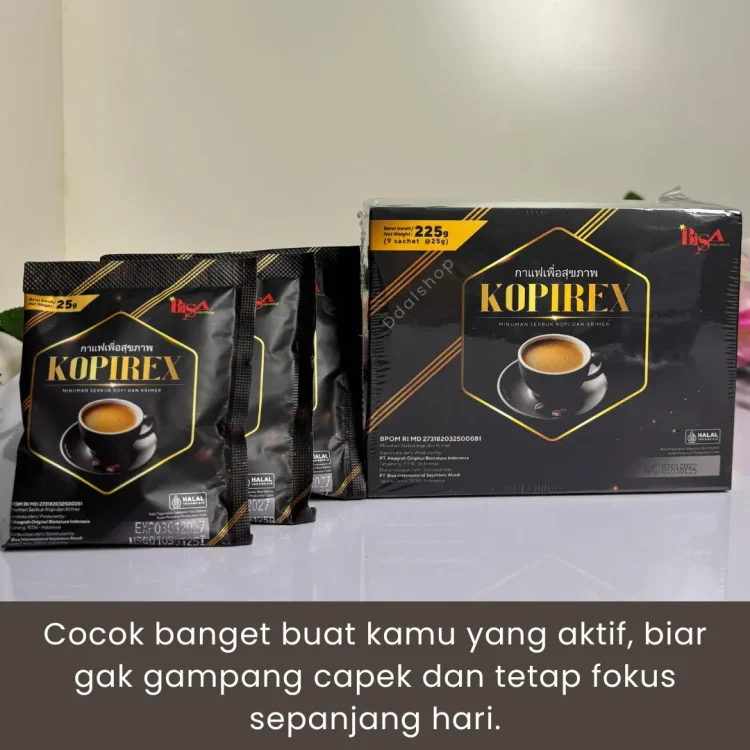 Diperkaya dengan ekstrak ginseng, herbal bermanfaat, vitamin, dan mineral, KOPIREX mendukung kesehatan tubuh secara menyeluruh, mengurangi kelelahan, menjaga fokus, dan membuat tidur lebih nyenyak. Aman dikonsumsi karena sudah terdaftar di BPOM RI, bersertifikat HALAL MUI, ISO, dan GMP.