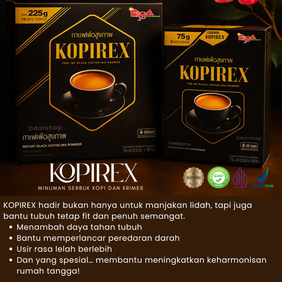 Nikmati sensasi kopi yang nikmat sekaligus menyehatkan dengan KOPIREX, minuman serbuk kopi dan krimer yang diformulasikan dari bahan alami pilihan. Produk unggulan PT BISA Internasional Sejahtera Abadi ini membantu meningkatkan stamina, vitalitas, dan daya tahan tubuh pria secara alami tanpa efek samping.