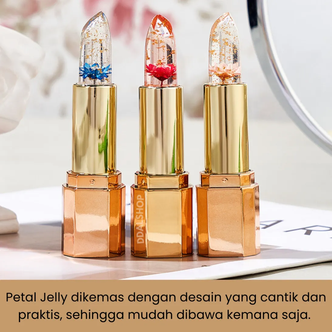 Lipstik Glossy Warna Tahan Lama Lip Balm Pelembab Bibir Pecah Dan Kering Lipstick Petal Jelly Cantik
