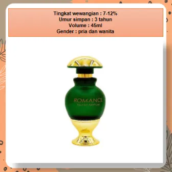 Parfum Arab Wanita Rasasi Romance Parfume EDP adalah pilihan tepat untuk kamu yang menyukai aroma elegan, lembut, dan tahan lama. Dengan konsentrasi wewangian 7–12% dan varian ukuran 5ml, 10ml, hingga 45ml, parfum ini cocok untuk penggunaan harian maupun acara spesial.