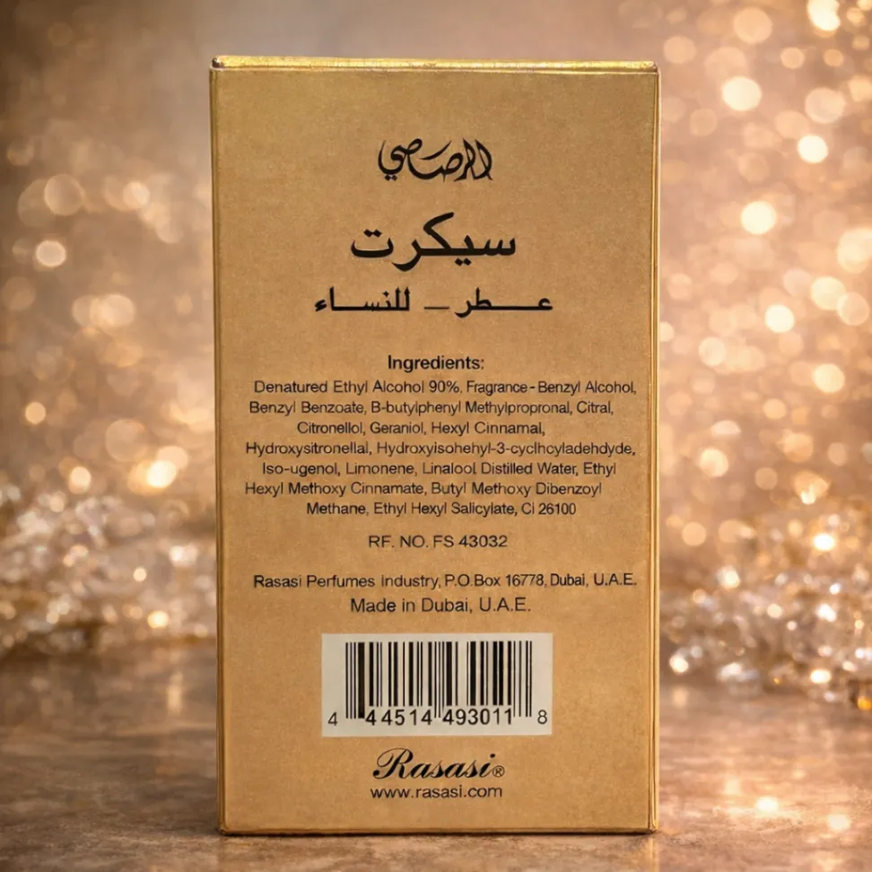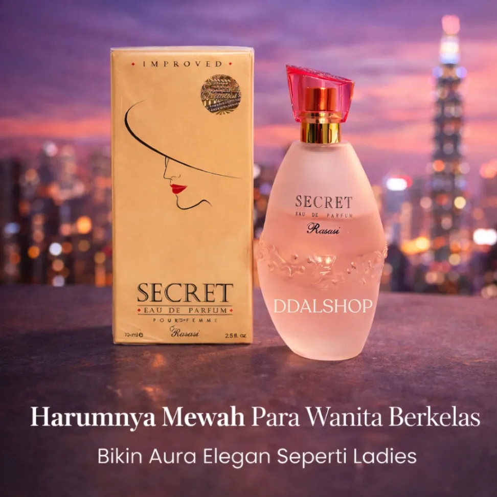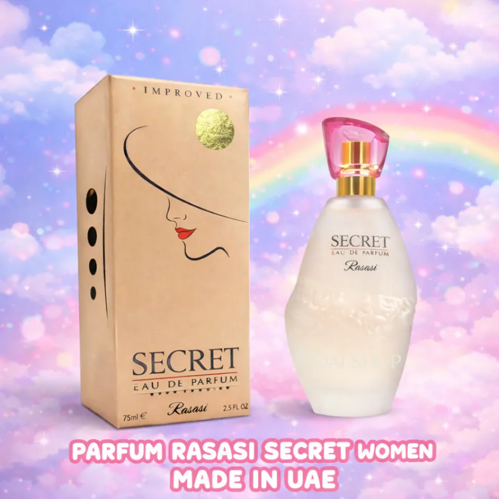 SECRET Parfume Spray EDP 35ml adalah parfum wanita dengan aroma khas Arabian yang elegan, feminin, dan tahan lama. Diformulasikan dengan konsentrasi wewangian tinggi 12–18% (Eau de Parfum), parfum ini menghasilkan wangi yang lebih kuat, lembut di kulit, dan mampu bertahan 8–10 jam lebih.