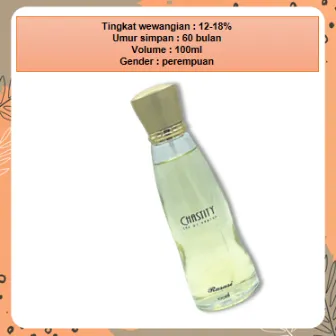 Jadikan CHASTITY pilihan parfum harian Anda yang memadukan kemurnian, kesegaran, dan daya pikat yang tahan lama. Cocok untuk hadiah maupun koleksi pribadi Anda.