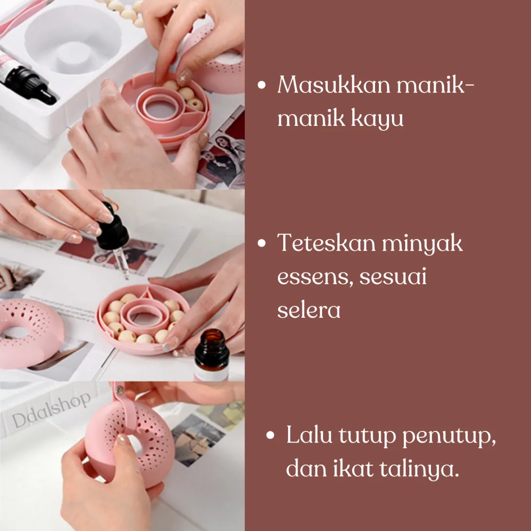Cukup teteskan minyak esensial ke manik kayu, tutup kembali kotaknya, dan gantungkan di area yang kamu inginkan. Sangat praktis, aman, dan cocok untuk yang suka kebersihan serta kenyamanan ruangan dengan sentuhan aromaterapi. Jadikan ruang kecilmu lebih harum, segar, dan menenangkan setiap hari! ✨