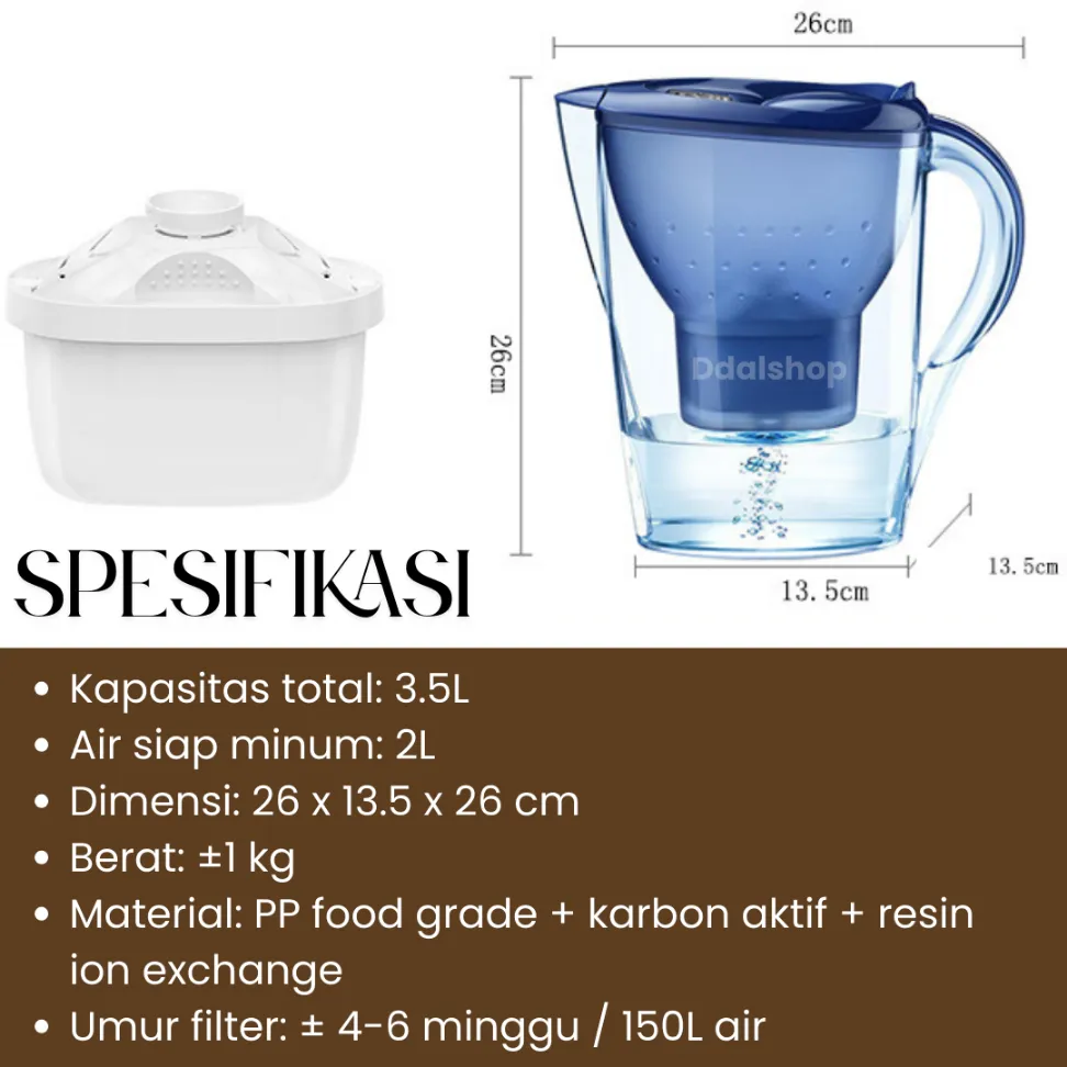 Pitcher Penyaring Air Minum 3.5L – Teknologi 4 Lapisan Filtrasi Modern, Sehat & Hemat!