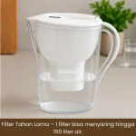 Filter yang digunakan juga tahan lama, mampu menyaring hingga 150 liter air (±4-6 minggu pemakaian). Ditambah fitur indikator digital pintar, Anda tidak perlu bingung kapan waktunya mengganti filter.
