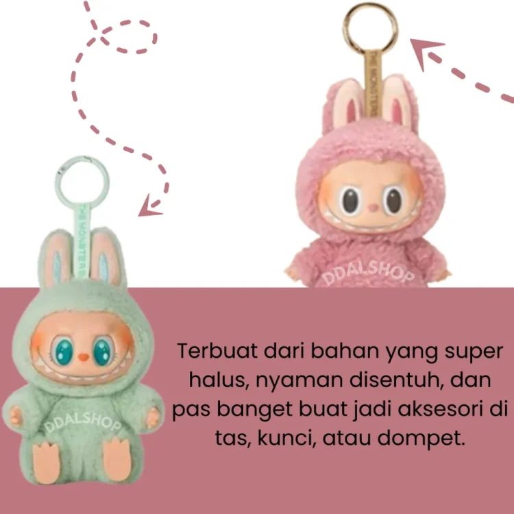 - Desain Lucu & Ekspresif: Labubu hadir dengan mata besar ekspresif dan senyum manis yang menawan hati.
