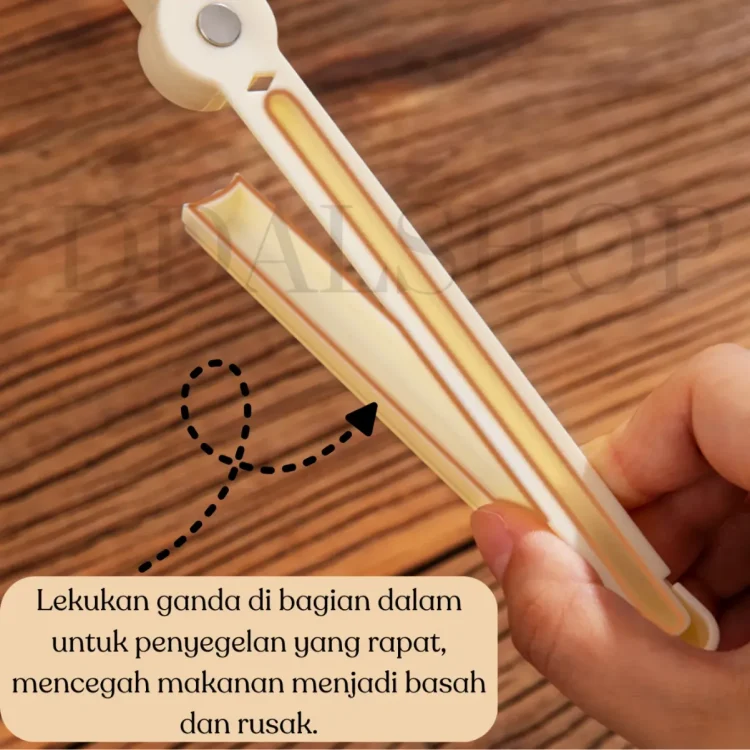 Klip ini efektif mencegah udara masuk ke dalam kantong plastik, menjaga kualitas, rasa, dan kesegaran makanan seperti snack, roti, bumbu dapur, hingga makanan ringan. Dibuat dari bahan ABS berkualitas tinggi, klip penyegel ini ringan namun kuat dan tahan lama digunakan sehari-hari.