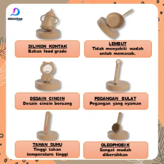 Tersedia dalam varian Spatula, Sekop, Sendok Sup, Saringan, Sendok Nasi, dan Paket Set Lengkap. Desain ergonomis dengan pegangan nyaman membuat aktivitas memasak jadi lebih mudah dan menyenangkan.