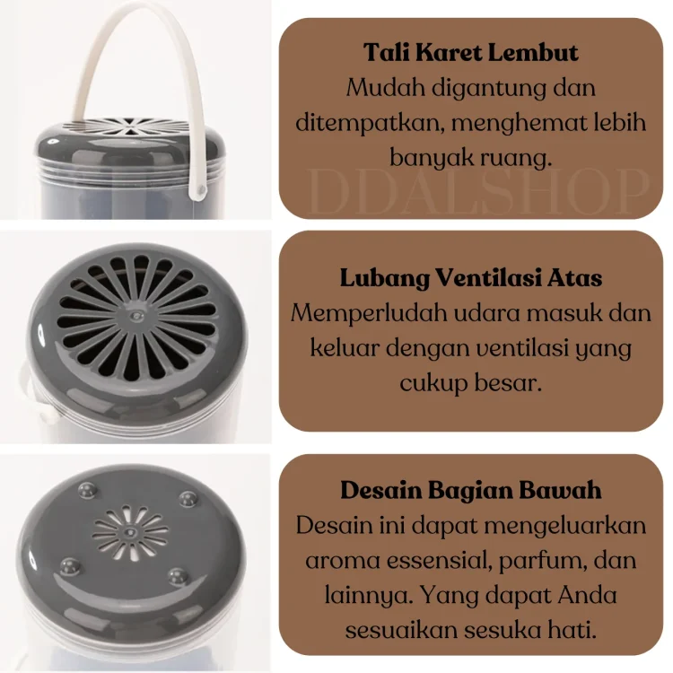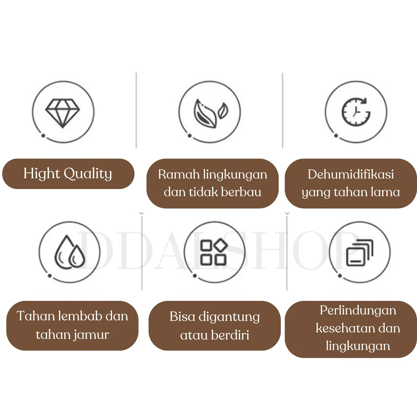 Cocok untuk digunakan di lemari, kamar tidur, gudang, atau ruang penyimpanan kecil. Jaga kualitas pakaian dan udara tetap bersih dan segar setiap hari!