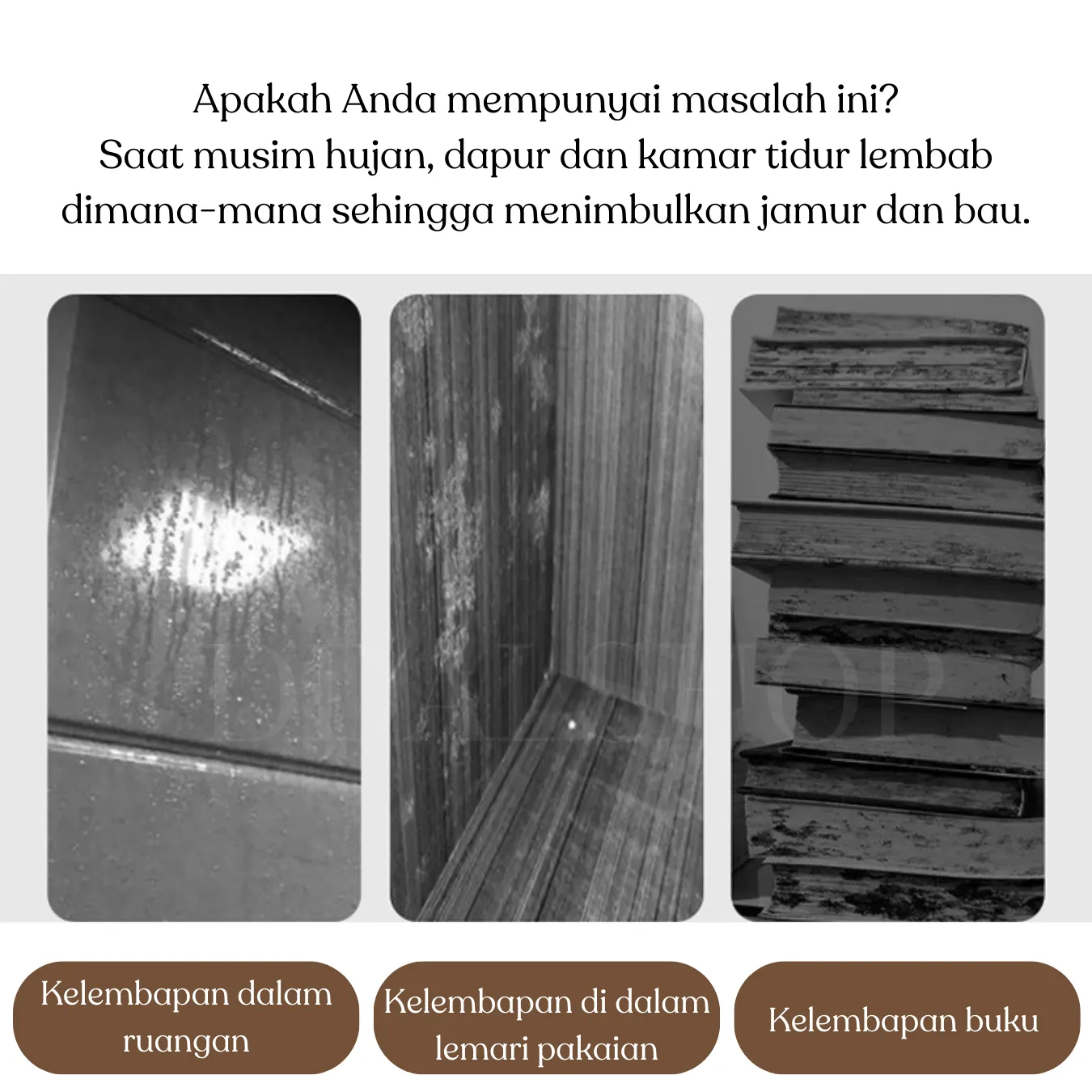 Atasi kelembapan berlebih di lemari dan ruangan kecil dengan Kotak Penyerap Kelembapan Multifungsi! Didesain untuk menyerap air secara maksimal, dehumidifier ini efektif menjaga pakaian tetap kering, mencegah bau apek, dan mengurangi risiko tumbuhnya jamur.