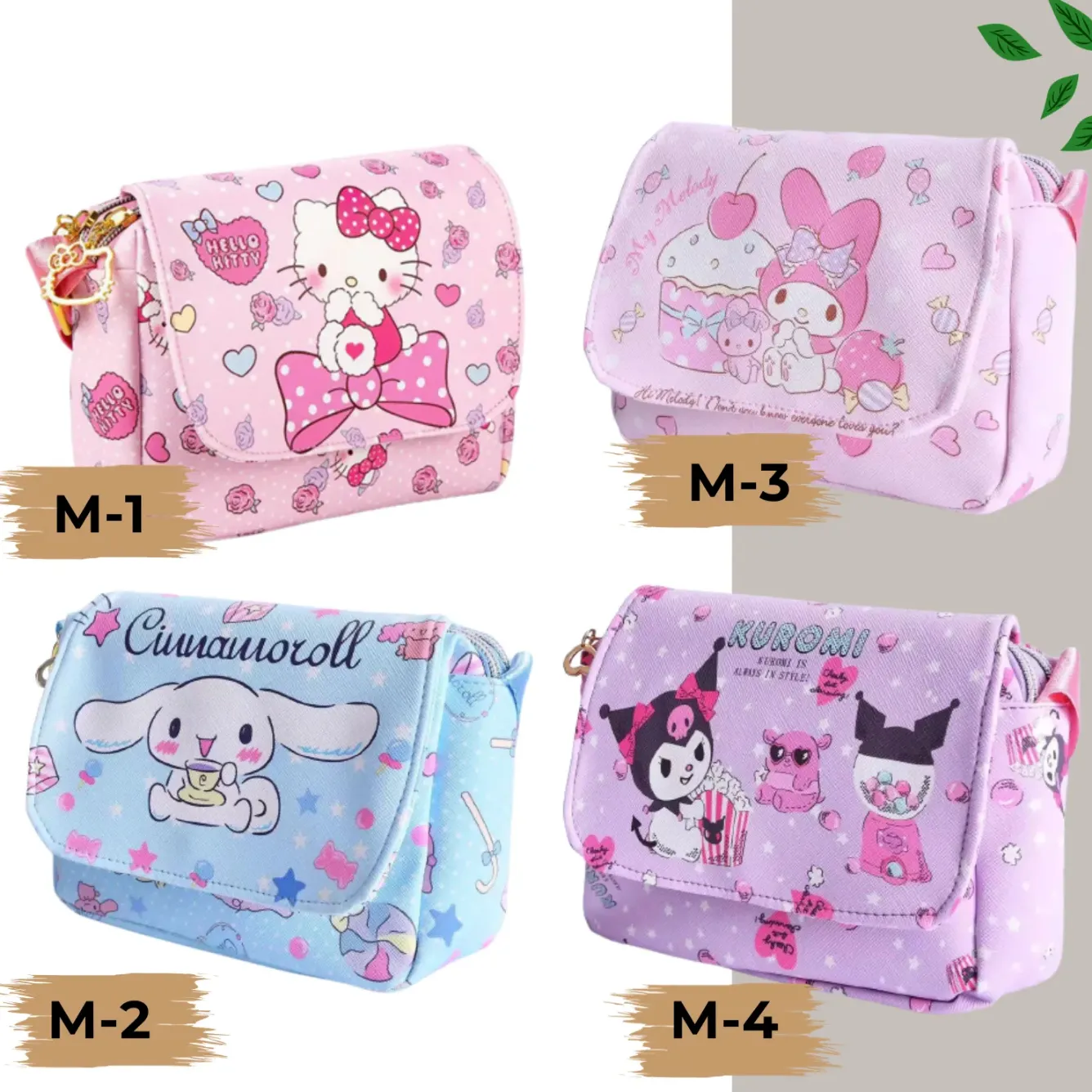 Tas Slempang Anak Perempuan Karakter Hello Kitty, Kuromi, Cinnamoroll, My Melody – Tas Jinjing PU Import Lucu dan Stylish