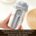 Terbuat dari material PP food grade bebas BPA, aman untuk makanan panas maupun dingin. Dilengkapi sendok & garpu bawaan dengan slot khusus sehingga tetap higienis dan tidak perlu membawa alat makan tambahan.