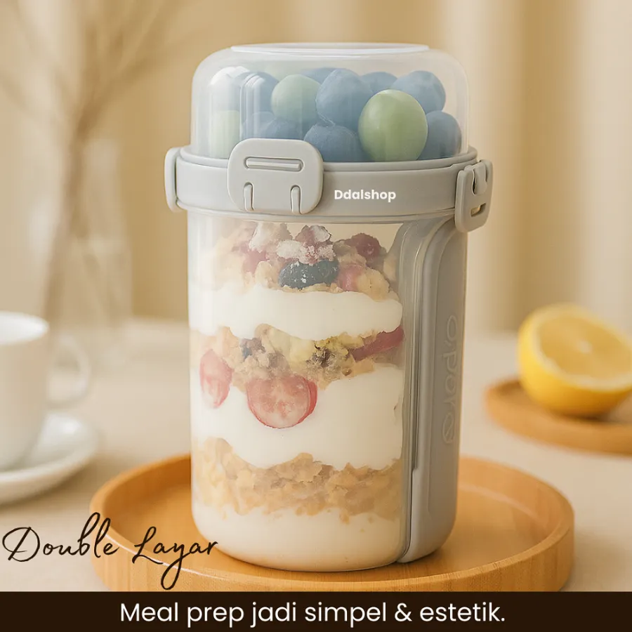Tempat Salad Portabel Double Layer ini adalah solusi praktis untuk Anda yang ingin menjalani pola hidup sehat tanpa ribet. Dirancang dengan desain lapis ganda (double layer), cup ini mampu memisahkan salad, buah, yogurt, granola, saus, hingga camilan agar tetap segar, tidak lembek, dan tidak bercampur sebelum dimakan.